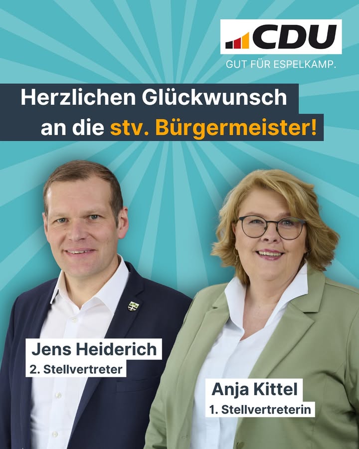 Der Stadtrat von #Espelkamp hat sich gestern konstituiert und in seiner ersten Sitzung Anja Kittel und Jens Heiderich als ehrenamtliche Stellvertreter von Bürgermeister Dr. Henning Vieker gewählt.Wir sagen herzlichen Glückwunsch und wünschen alles Gute!..#gutfürespelkamp #Altgemeinde #EspelkampCity #Fabbenstedt #Fiestel #Frotheim #Gestringen #Isenstedt #Schmalge #Vehlage #MindenLübbecke
