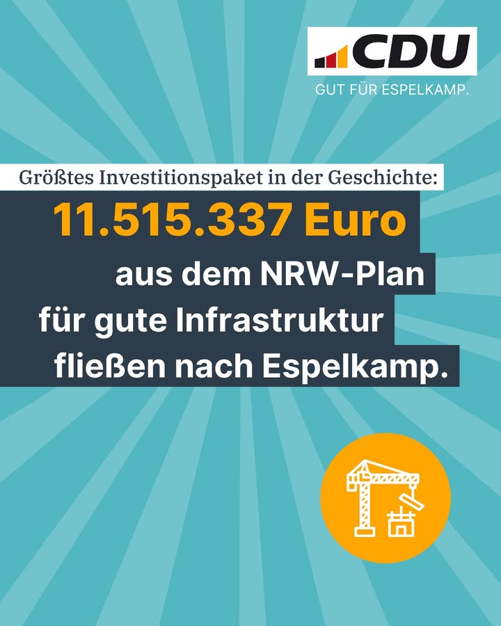 Davon profitiert auch Espelkamp, wie uns unsere CDU-Landtagsabgeordnete Bianca Winkelmann mitgeteilt hat.